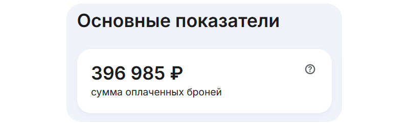 Основные показатели. Это сумма оплаченных броней, количество оплаченных суток, добавлений в Избранное, глубина бронирования.
