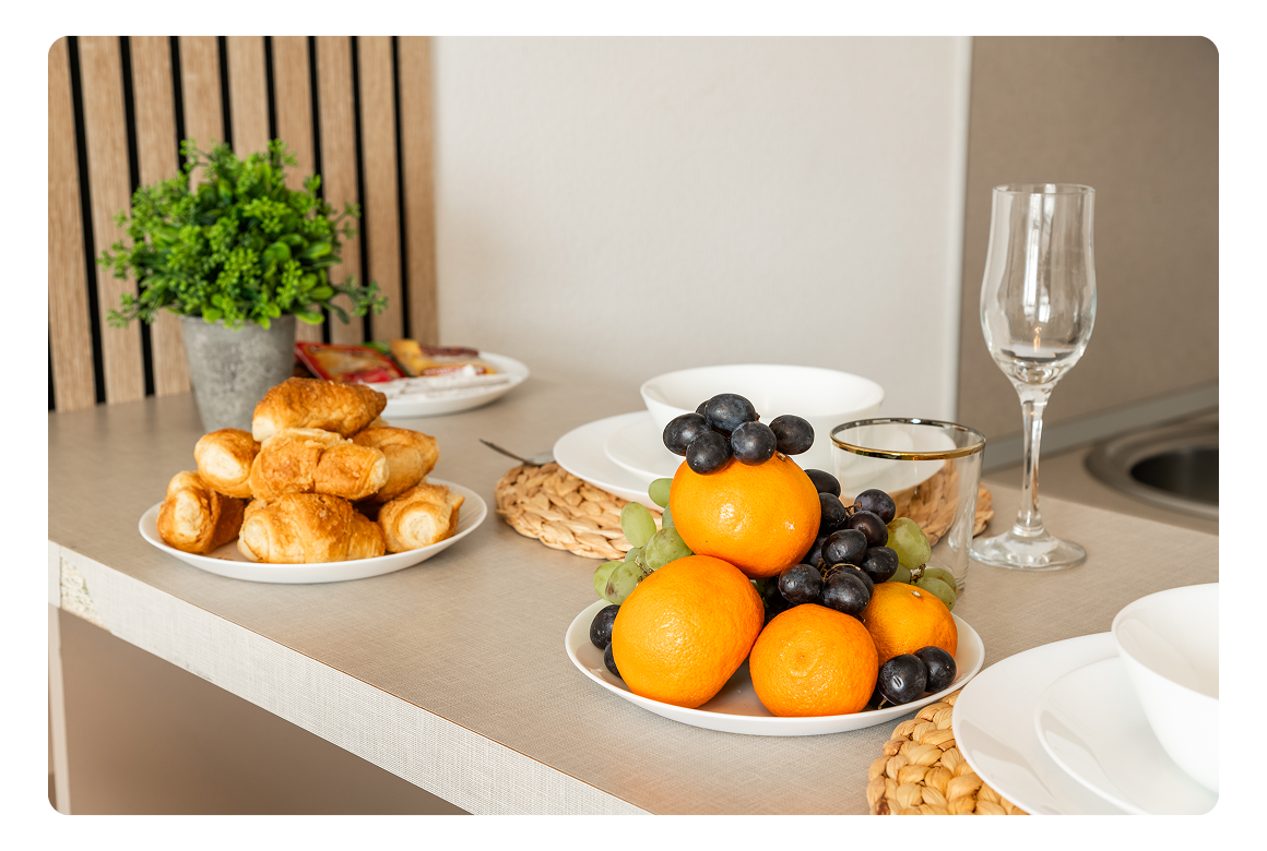 «Мы стараемся удивлять гостей приятными мелочами. Например, у нас всегда есть базовый набор — чай, кофе, сахар, соль, специи. Но помимо этого мы добавляем что-то особенное: печенье, конфеты или фрукты в зависимости от сезона», — рассказывает Натали.