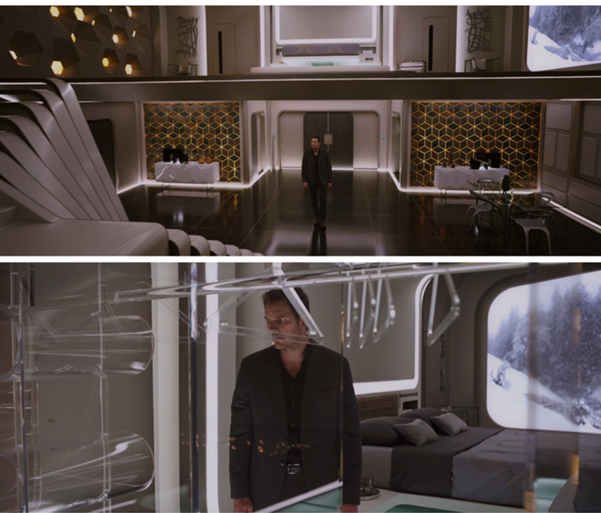 Двое проснулись на космическом корабле будущего раньше срока и теперь вынуждены приспособиться к жизни на нём и друг с другом. Каждое помещение их нового дома выглядит как выставочный зал: безжизненное оформление, глянец и холодный свет. Если ищите баланс между технологичностью и уютом – это кино вас вдохновит и напомнит, как важно не потерять настоящее в безупречно красивой среде.