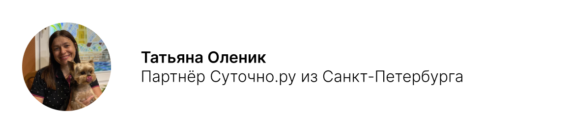 А для меня бронь через Суточно.ру – это гарантия. Удобно, что есть посредник, через которого можно взаимодействовать с гостями. И люди сразу становятся более ответственными.