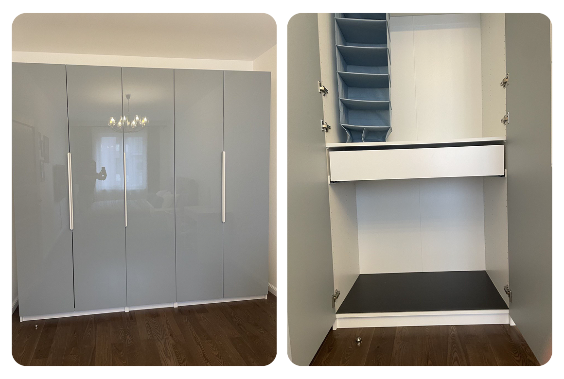 Когда заказывала шкаф (в «Икее», когда она ещё существовала), сконструировала в нём отдел для чемоданов – место внизу с износостойким покрытием, чтобы следов от колёс не оставалось. Придумала это, чтобы путешествующим было удобно.