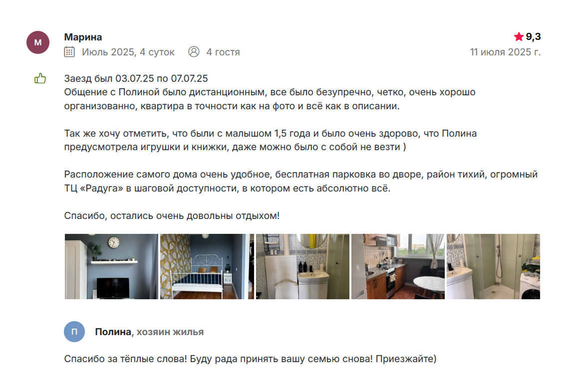 – Сначала я сдавала квартиру на иностранных ресурсах. Когда они ушли с рынка, многие были в растерянности – не знали, как вывести свои деньги с ресурсов и что делать дальше. Пришлось быстро искать, на какие сервисы перейти – чтобы они были удобны мне, как хозяйке, и чтобы я смогла там развиваться.