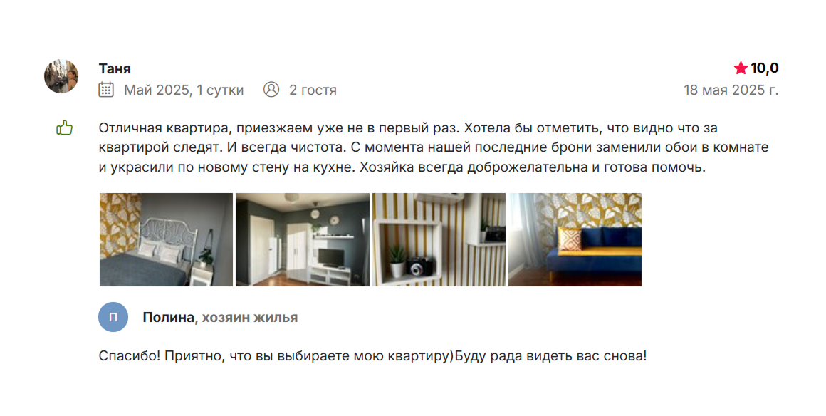 – Вы сказали, что вам нравится возможность оставлять отзывы о гостях. Почему?