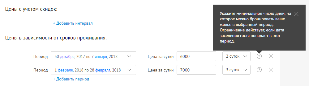 Теперь вы можете не только указывать разные цены на определенные периоды, но и устанавливать минимальный срок проживания для каждого такого периода.