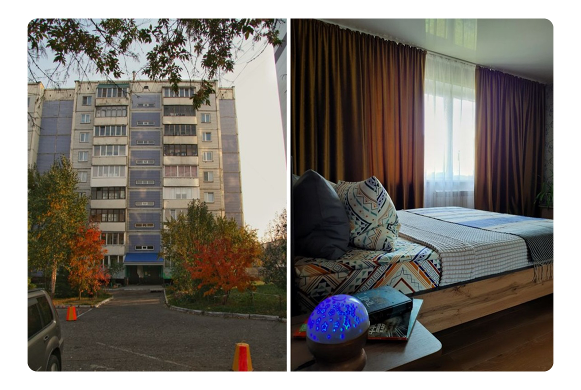 Наша первая квартира в девятиэтажке находится в спальном районе без очевидных мест притяжения, то есть далеко от центра, железнодорожного и автовокзала. Единственный плюс — относительная близость к аэропорту. Но к нашему удивлению, объект стал пользоваться спросом. Скорее всего, потому что в этом районе мало посуточных квартир. Получается, сами того не зная, мы восполнили пробел на рынке.