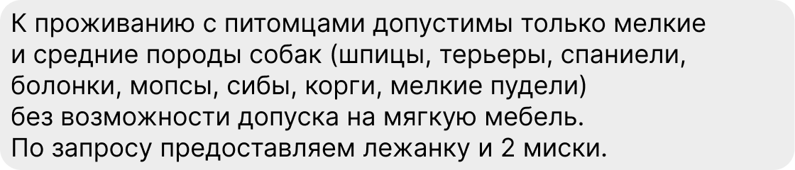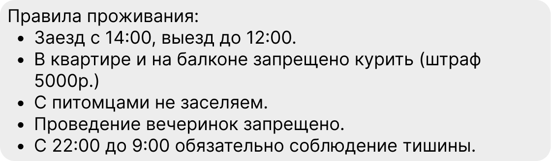 3. Ознакомьте гостя с правилами заезда/выезда и проживания. Если у вас бесконтактное заселение с кейбоксом – информируйте об этом, если готовы принять путешественников с домашними животными до пяти килограммов – тоже.