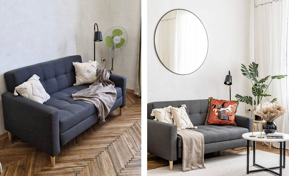 Естественный свет делает помещение светлее и воздушнее, убирая ощущение тесноты. Особенно это важно для маленьких квартир — если комната тёмная, она кажется меньше, чем есть на самом деле. Светлые стены и зеркала помогают усилить эффект дневного освещения, отражая его по всей комнате.