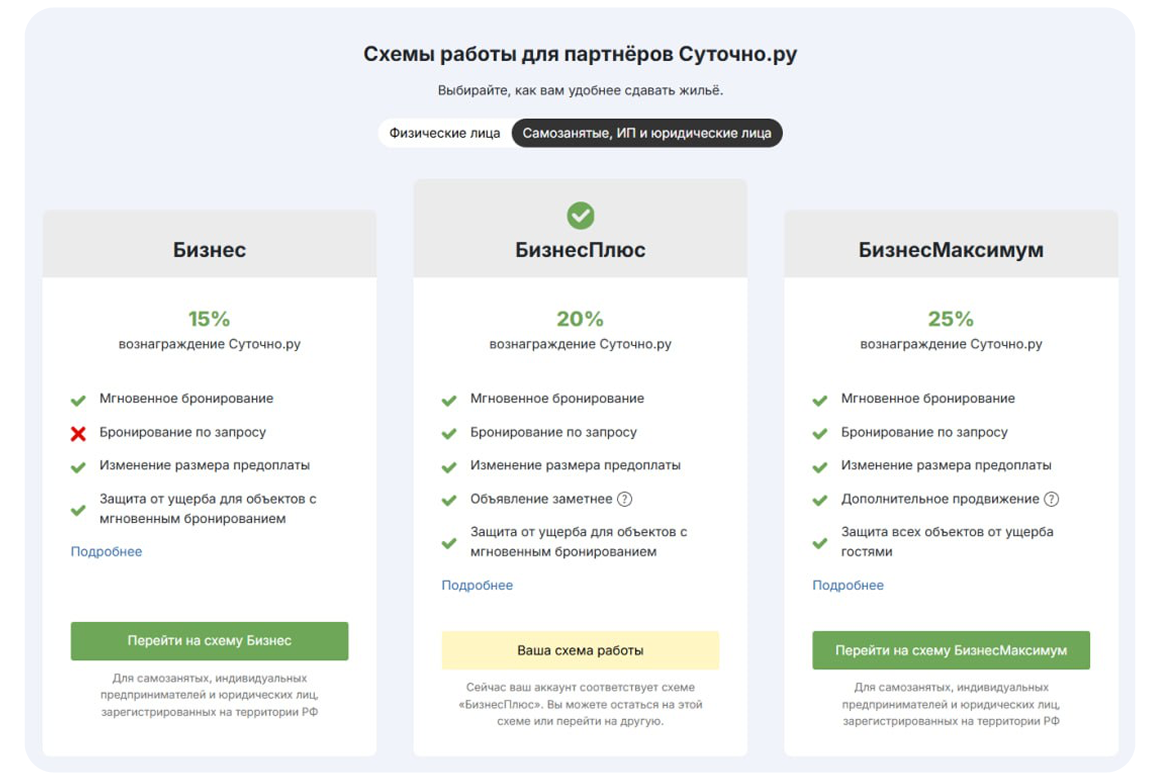 После подписания соглашения с нашей стороны пользователь автоматически переводится на схему «Бизнес Плюс». Далее – он может остаться на ней или выбрать другую доступную – «Бизнес» или «Бизнес Максимум».