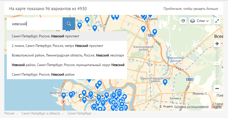 Когда гость смотрит объекты на карте, он может вбить название интересующей улицы в специальное поле.