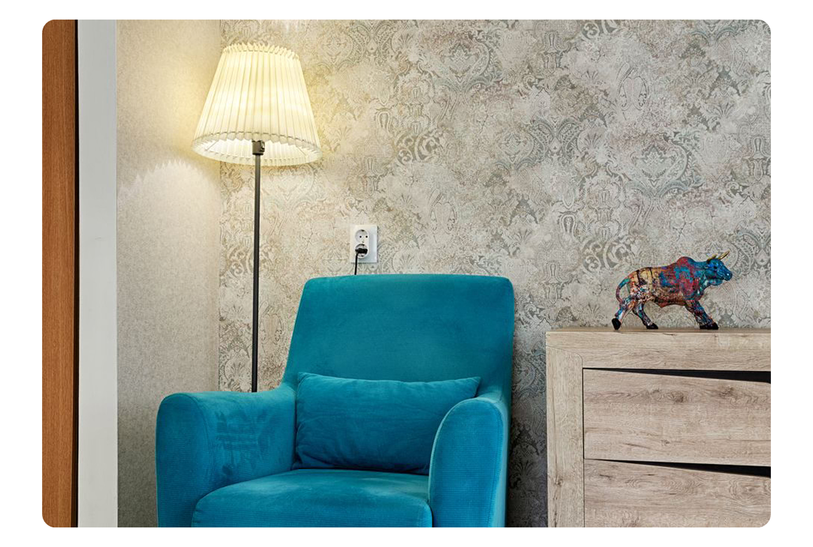 Пока я была в декрете, мы сделали ремонт, чтобы к сезону снова запустить объект. А с работы уволилась ещё до беременности, понимала, что с головой уйду в посуточную аренду. Позже мы приобрели вторую квартиру, прямо под нашей, этажом ниже. Здесь мы сделали акцент на интерьерных деталях — вся картинка собралась вокруг голубых кресел, которые мы увидели, влюбились и купили. У нас дома стояли быки из Барселоны в тех же оттенках, и мы переселили их в новую квартиру.